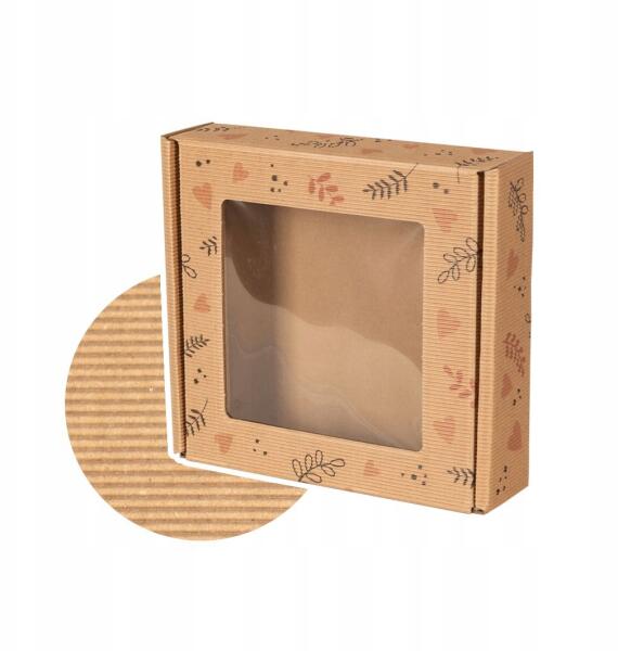Ajándékdoboz Karton Ablakkal Szív És Levelek 20X20X5 CM Valentin NapALLEGRO