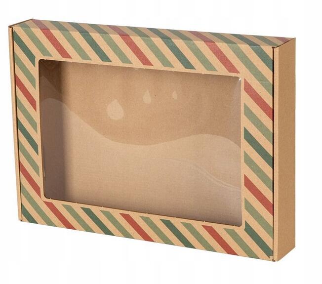 Doboz Karton Ablakkal Karácsonyi Ajándék Csíkok 35X25X5 CM